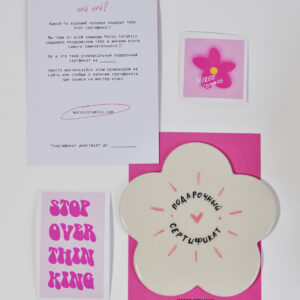 Не знаете что подарить близкому человеку? Не переживайте, мы придумали идеальный подарок. Тут и бумажный подарочный сертификат, который можно использовать для покупки на сайте или на мастер-класс. И его керамическая версия, которую можно использовать в качестве декора для дома, или даже в практических целях, например как подставку под горячее